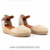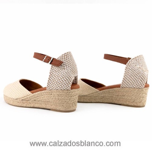Zapatilla de Esparto en color beig, tejido espiga.