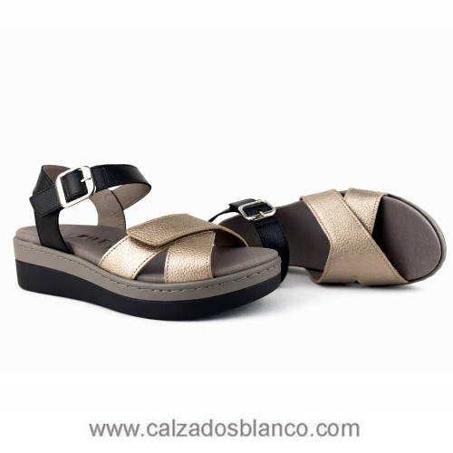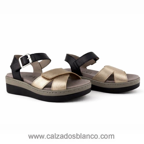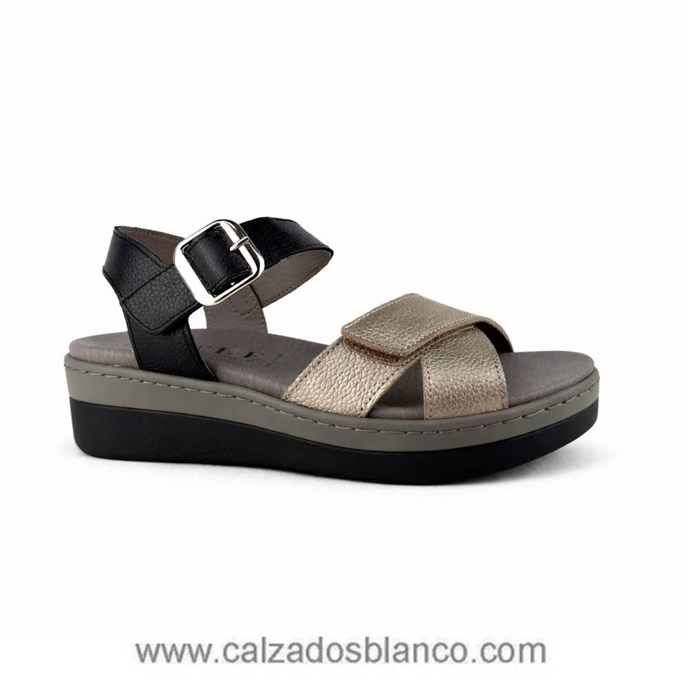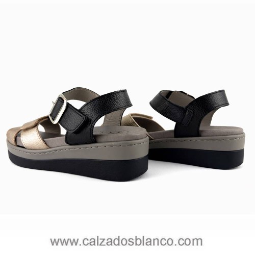 Sandalia combinada con hebilla de adorno.