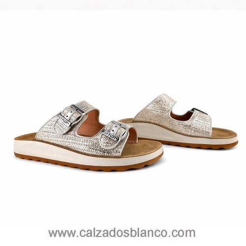 Sandalia tipo bio color plata.